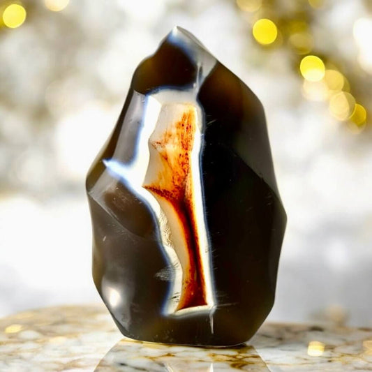 Achat-Flamme – Ausdrucksstarkes Edelsteinobjekt in Schwarz-Weiß