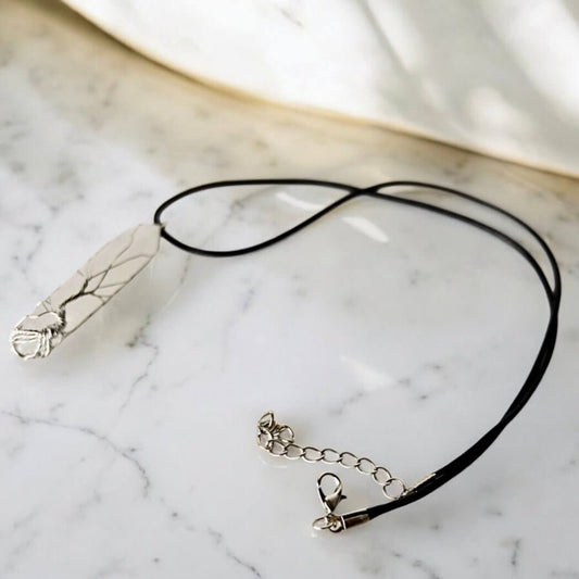 Bergkristall – Schwarze Halskette mit silberverziertem Doppelender