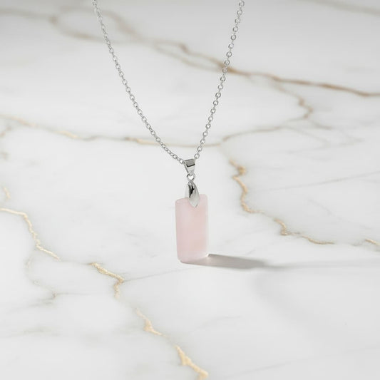 Rosenquarz – Silberne Kette mit geschliffenem Anhänger