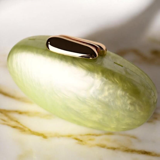 Clutch in Pistaziengrün mit schimmerndem Perlmutt-Effekt
