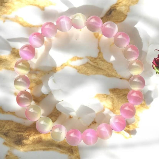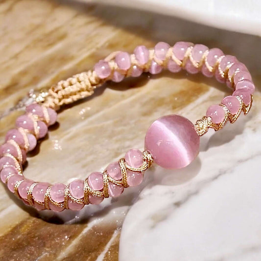 Katzenauge – Rosa Kugelarmband mit sanftem Schimmer