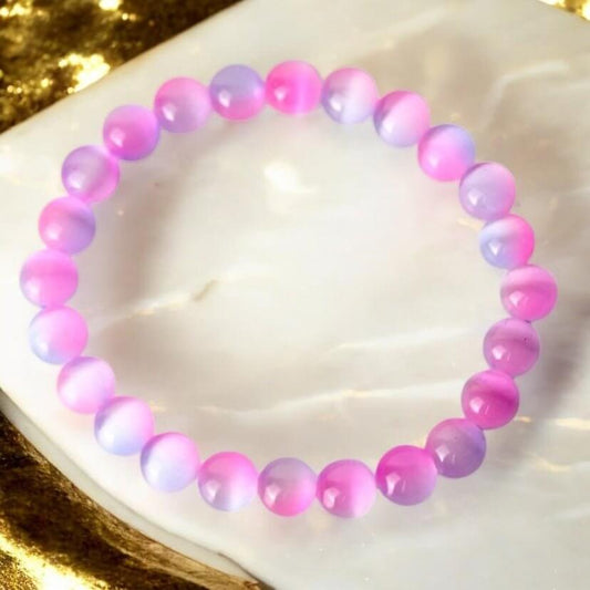 Katzenauge Kugelarmband – Rosa-Blau in schimmerndem Farbspiel