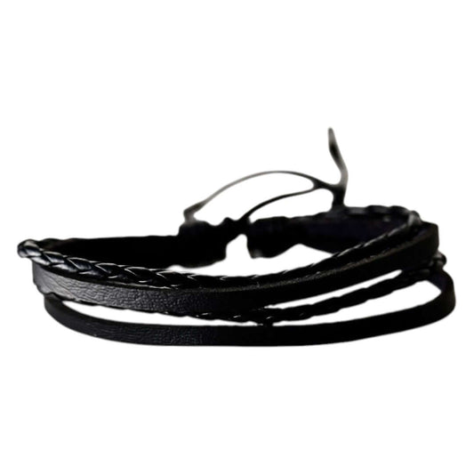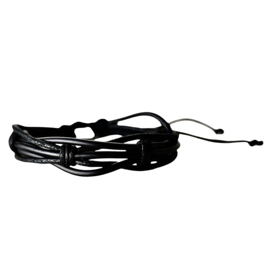 Lederarmband – Schwarzes Armband mit verbundenen Strängen