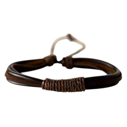Lederarmband – dunkelbraun mit gewickelten Schnüren
