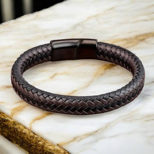 Lederarmband – dunkelbraun mit geflochtenen Strängen