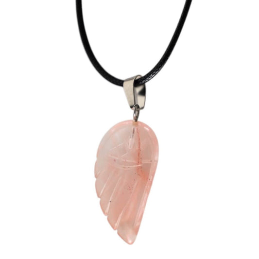 Feuerquarz – Schwarze Halskette mit Flügel-Anhänger
