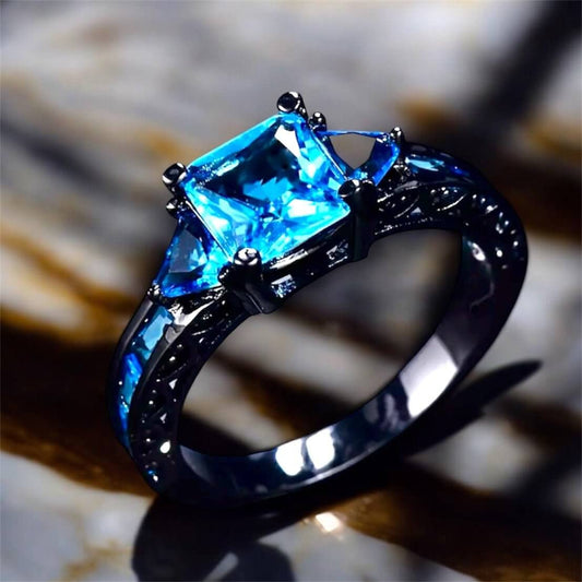Ring in Silber mit quadratischem funkelnden blauen Steinen
