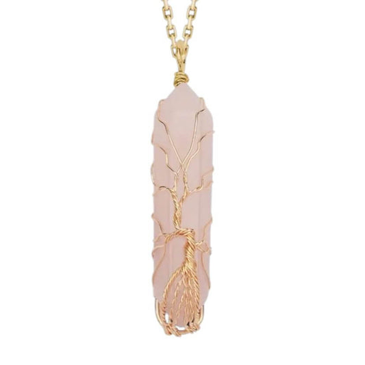 Rosenquarz - Halskette mit goldverziertem Doppelender