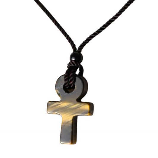 Tigerauge – Schwarze Halskette mit Anch-Anhänger