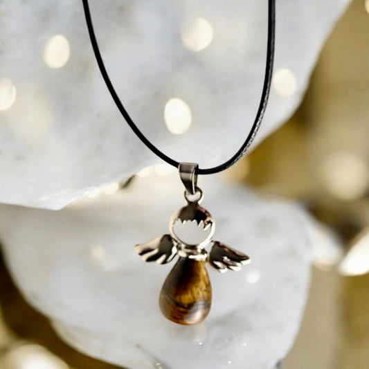 Tigerauge – Schwarze Halskette mit Schutzengel