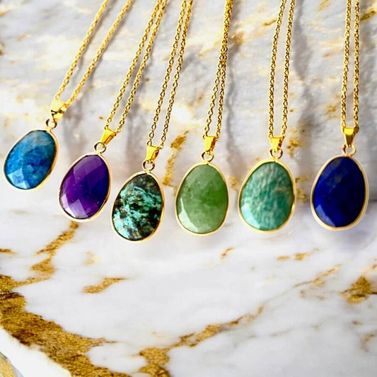 Türkis vereint natürliche Schönheit mit stilvoller Eleganz und zeitloser Ausstrahlung. Dieser Kristall ist besonders geschätzt für seine lebendigen Blautöne, die jedem Schmuckstück Charakter verleihen. Die Kollektion umfasst verschiedene Schmuckformen, darunter Halsketten, Armbänder, Ringe und Ohrringe, die alle sorgfältig verarbeitet sind, um die natürliche Struktur und Farbvielfalt des Kristalls zu betonen.