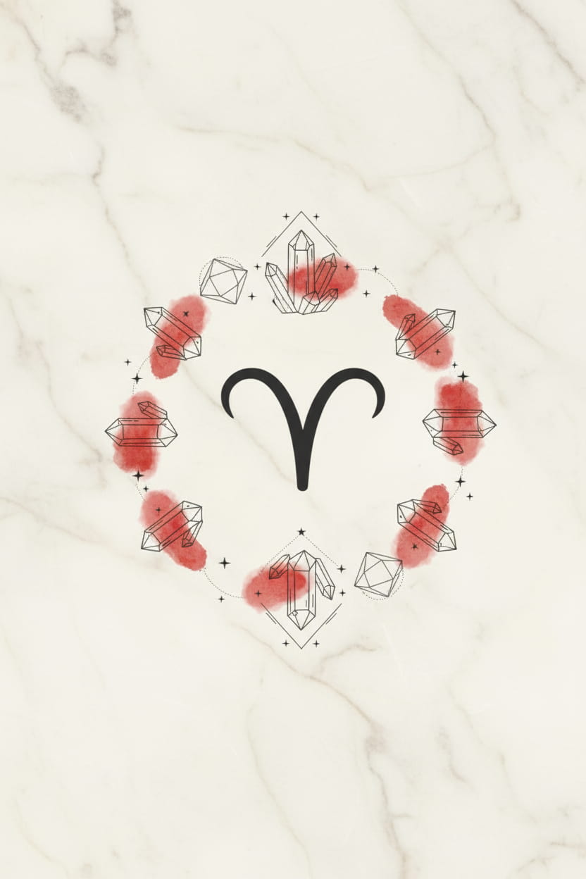 Kristalle wie Hämatit, Citrin, Jaspis und Karneol ergänzen den selbstbewussten Charakter des Widders. Ausdrucksstarke Farben und klare Formen unterstreichen Dynamik, Präsenz und Individualität.