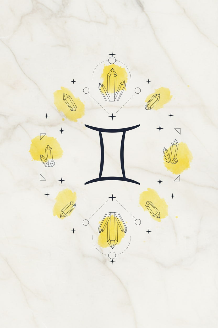 Achat, Citrin, Fluorit und Bergkristall spiegeln die Vielseitigkeit der Zwillinge wider. Leicht, klar und wandelbar – Kristalle, die Offenheit und Inspiration begleiten.
