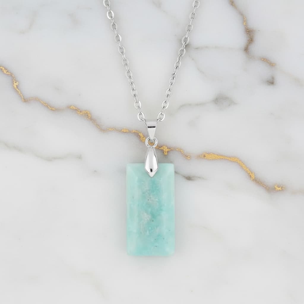 Amazonit – Silberne Kette mit geschliffenem Edelstein-Anhänger