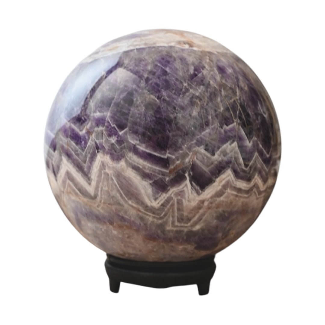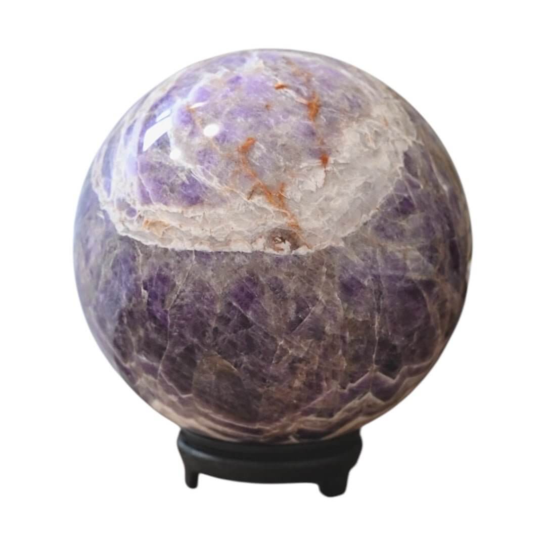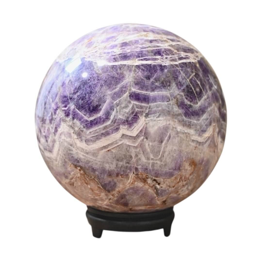 Die Kugel besteht aus Amethyst, der traditionell für Harmonie, innere Ruhe und positive Energie bekannt ist. So vereint dieses Einzelstück natürliche Schönheit, dekorative Wirkung und energetische Unterstützung in einem beeindruckenden Edelsteinobjekt, das Räume verschönert, ausgleicht und eine inspirierende Ausstrahlung schenkt.