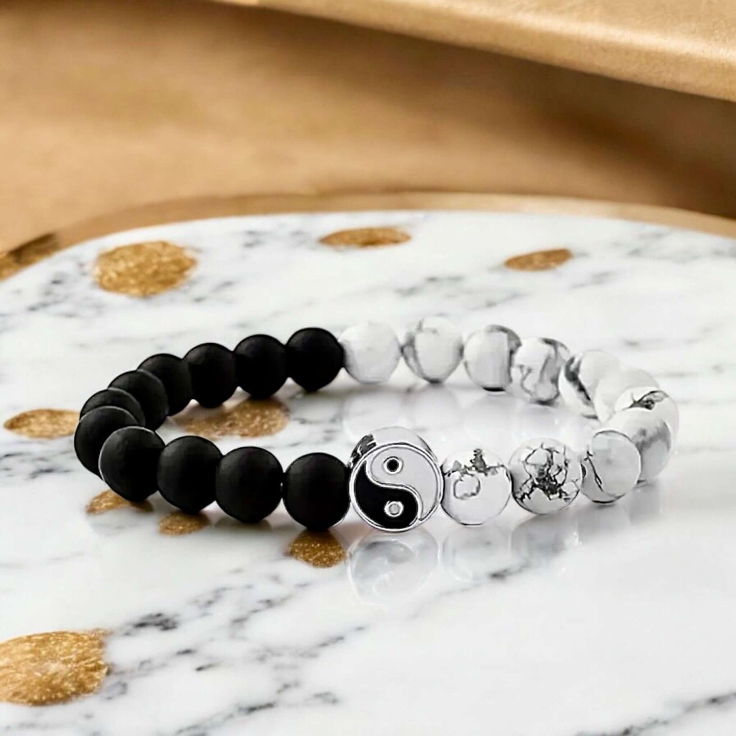 Trage das Howlit Vulkanstein Armband Yin und Yang, um dich geerdet, ausgeglichen und zentriert zu fühlen – ein Symbol für die Verbindung von Gegensätzen und die Harmonie in deinem Alltag.