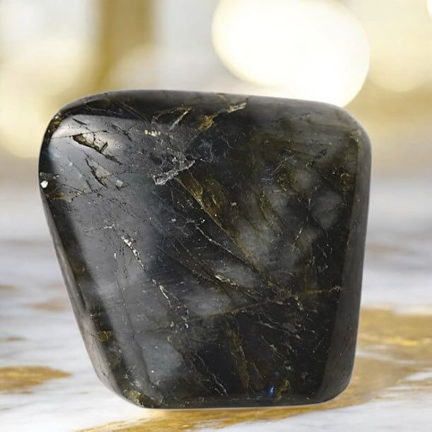 Neben seiner dekorativen Wirkung entfaltet diese Freiform auch energetische Qualitäten. Labradorit gilt als Kraftstein, der Schutz bietet, die Intuition fördert und innere Balance unterstützt. Die harmonische Struktur des Natursteins ermöglicht es, seine positive Energie gleichmäßig in den Raum wirken zu lassen, wodurch er nicht nur visuell, sondern auch energetisch für Ruhe und Ausgeglichenheit sorgt.