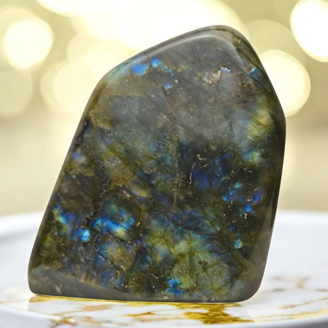 Die Labradorit Freiform eignet sich ideal für alle, die Kristalle lieben und ihre Umgebung mit einem energetischen Highlight bereichern möchten. Ob als Geschenk oder für die eigene Sammlung – dieses Naturjuwel verbindet Schönheit, energetische Kraft und stilvolles Design.