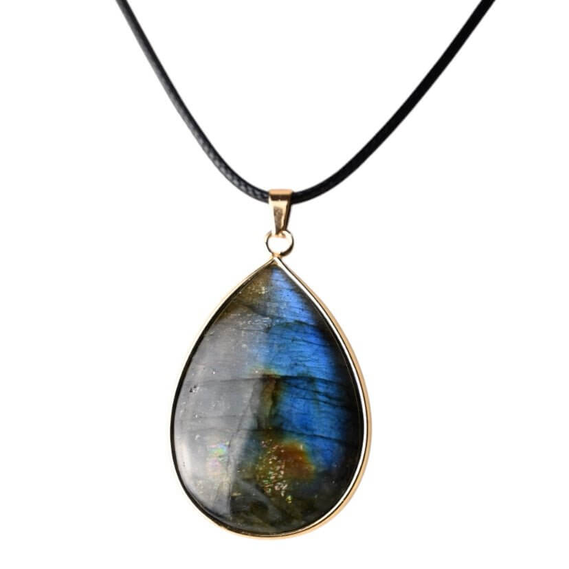 Labradorit – Schwarze Kette mit großem tropfenförmigem Anhänger