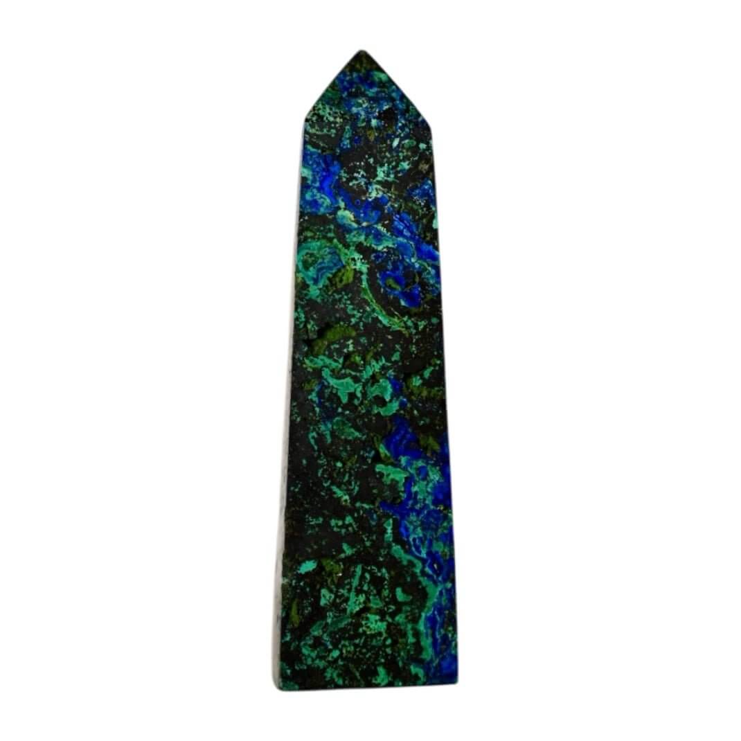 Der Malachit-Azurit Obelisk ist ein faszinierendes Einzelstück, das die natürliche Schönheit zweier kraftvoller Edelsteine in perfekter Harmonie vereint. Die tiefen Grüntöne des Malachits treffen auf das intensive Blau des Azurits und schaffen ein lebendiges Farbspiel, das jedes Objekt einzigartig macht. Jede Maserung, jede Linie erzählt die Geschichte von Millionen Jahren geologischer Formung, wodurch dieser Obelisk nicht nur optisch, sondern auch energetisch zu einem wahren Highlight wird.