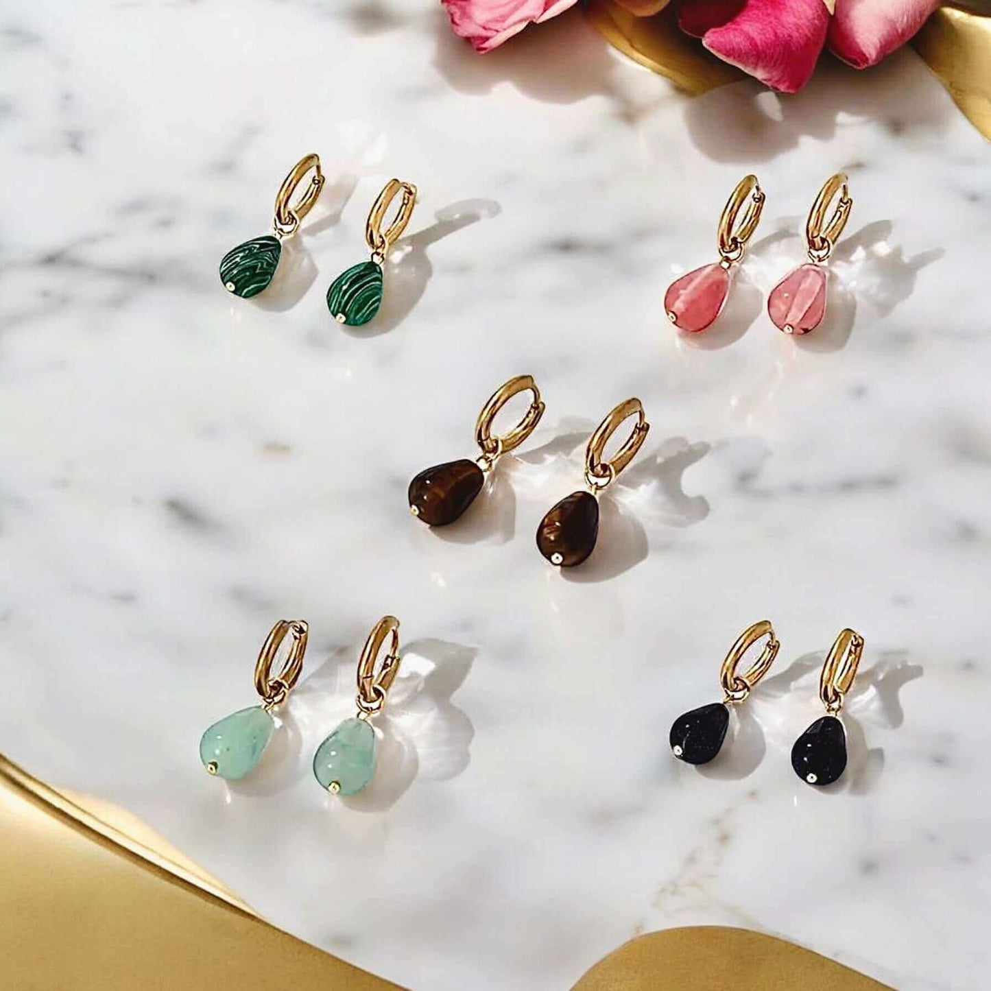 Diese filigranen Schmuckstücke vereinen die zarte Leuchtkraft von Opalit mit dem warmen Glanz goldener Fassung. In tropfenförmigem Design gestaltet, wirken sie gleichzeitig modern und zeitlos klassisch. Die Tropfenform verstärkt die natürliche Transparenz und den schimmernden Effekt des Steins, der je nach Lichteinfall sanft in unterschiedlichen Nuancen aufleuchtet. So entsteht ein magisches Farbspiel, das von zarten Blautönen über milchiges Weiß bis hin zu schimmernden Regenbogenreflexen reicht.